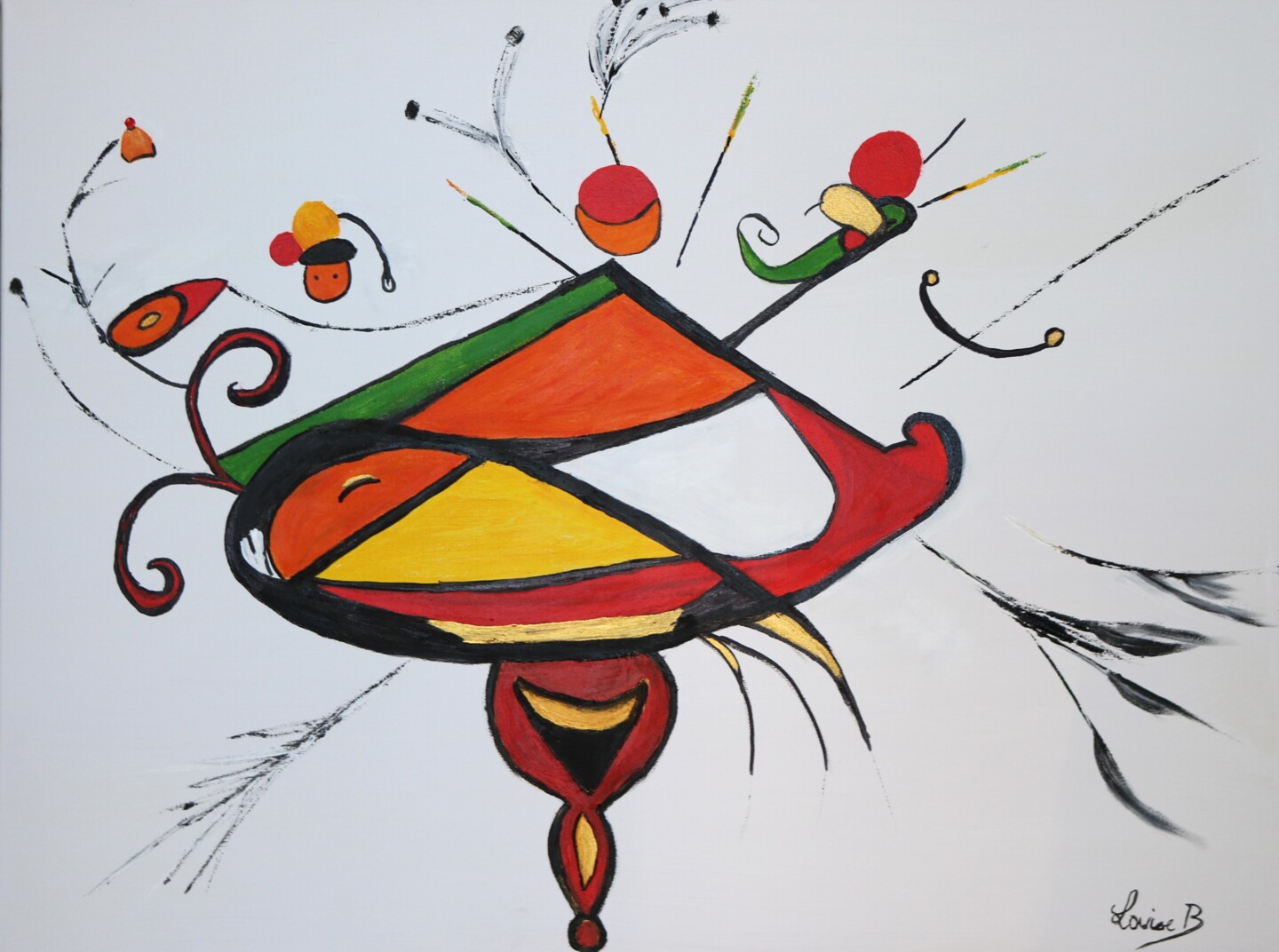 Laissez vous emporter au gré des lignes et des clins d'oeil de ce tableau abstrait fort en couleurs
